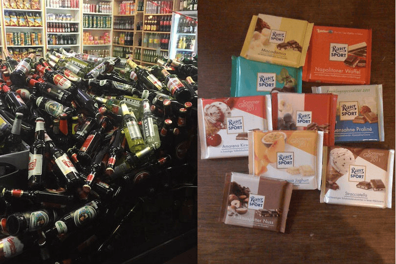 One of my strangest and in many ways most wonderful supermarket experiences was on the streets of Kreuzberg in Berlin. I was there with my family on a break between touring. Our boy Ralph was one at the time. He needed food, he needed nappies, it was 6am. We set off on our short walk to the Rewe with no bags, no stroller, nothing. In a daze I loaded up on mysterious pot-set yoghurts on choco-muesli (weirdly hard to find any cereal that’s not muesli and muesli that isn’t rammed with chocolate), German-made compostable nappies and probably a few bottles of Augustiner-Bräu Helles for later.