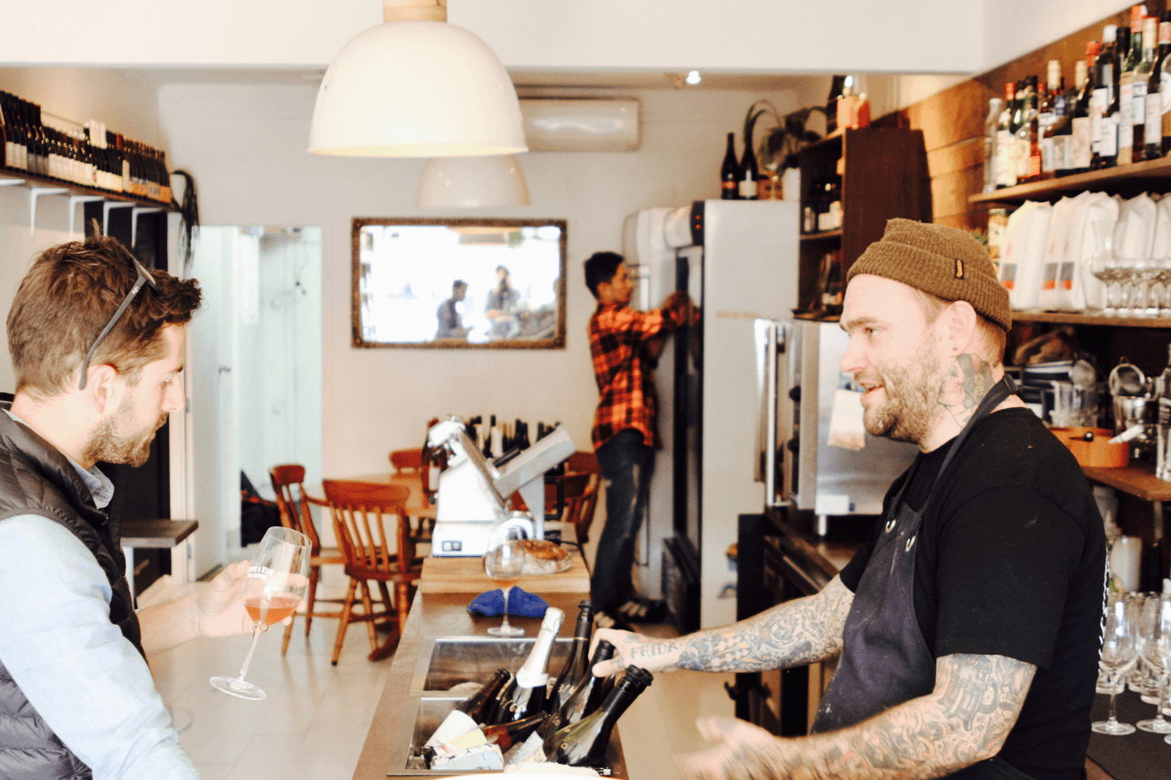Zane Kelsall and his partner Alexis are from Halifax, Canada. They have family in the North Shore and fell in love with the place, moving here with their two kids for a different lifestyle and a new chapter in life. Hence opening a wine bar within two minutes’ walk of their home and their kids’ schools. “We wanted change, and I liked the idea of not having real winters any more.” Zane and Alexis sold up their Halifax cafes, coffee roasting and ice cream business and very nearly moved to Lima, Peru, but instead managed to find themselves building a wine bar among the fabric shops and real estate agents of the Shore.