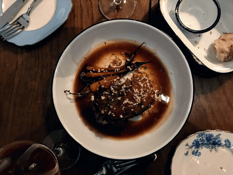 The sourdough is dark and bitter at the edges (which I love) and is a perfect match with the insane dish of prosciutto brown butter parmesan. This is the devil’s work, essentially three very fatty things together on one plate to make an even more delicious orgasmic orgy of fat. It’s what your stoner flatmate might make you at 2am if your stoner flatmate just happened to have really good charcuterie in the fridge. Kelsall tells me he “straight up stole that dish from Le Vin Papillon in Montreal.”