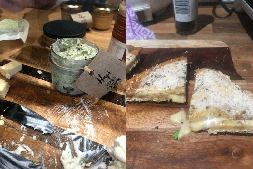 Hapī sells vegan cheese, nut milks and the like online, through their Napier store and at farmers markets. Their soft cheeses are based on cultured cashews and use a vegan probiotic, and this one features harore, the native forest mushroom. We love the use of indigenous ingredients, but unfortunately we didn’t love this cheese… “Flavourless and too tangy,” said Hayden.