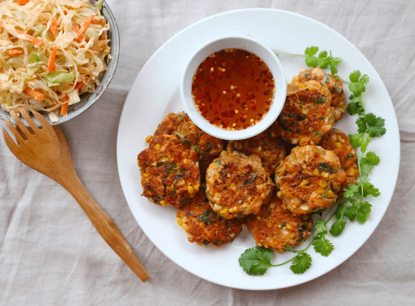 These Thai-style chicken and sweetcorn fritters are a new favourite of mine – full of chopped fresh coriander as well as spring onion, red curry paste, and lemongrass. Full of of fragrance, and then dipped in nước chấm. Another new creation are these incredibly moreish chicken, coriander, and jalapeño pizzas, which replace a standard tomato base with a spicy blend of tomato passata, fresh coriander, jalapeños, and spices.