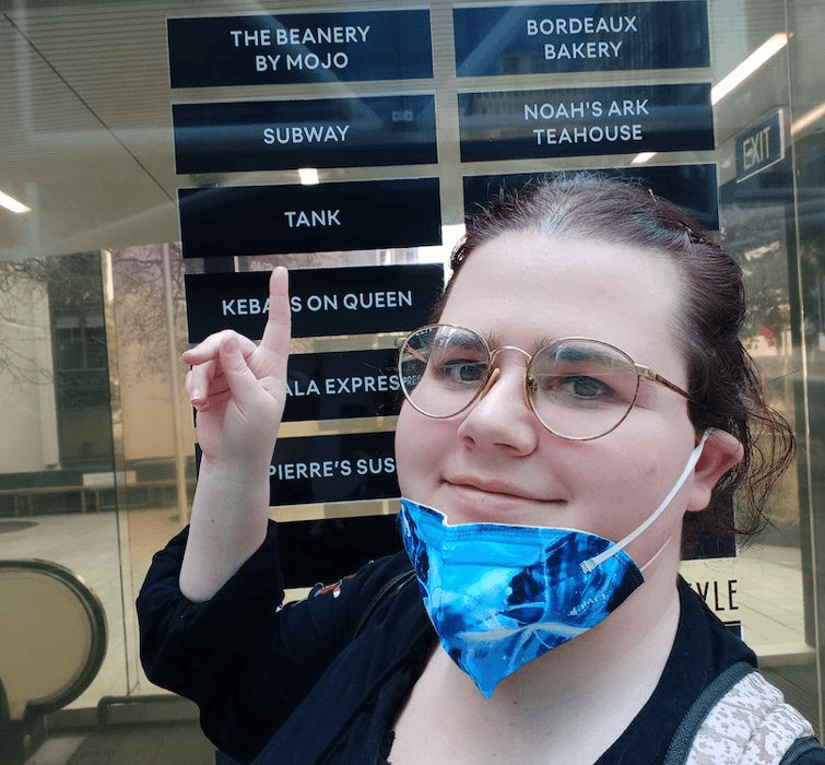Mojo Bowen Campus is spacious, with plenty of different types of seating. They’ve also got a wide range of food and drink. Made deeply anxious by all the people with jobs that require suit-wearing, I get my oat milk hot chocolate and sit outside to borrow a local Other Cafe’s wifi and try and get some work done. All my anxiety is being held in my neck and I try to shake some of it out as I write.