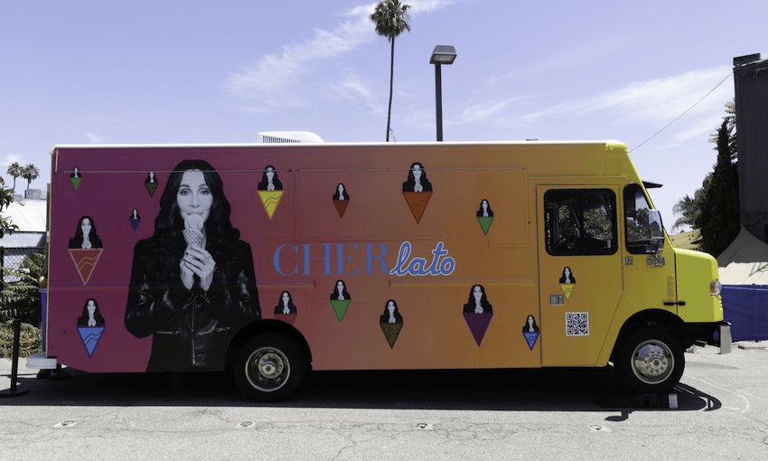 But it wasn’t. And so, five years and a pandemic later, Cherlato has launched. It’s targeted at the American market, thus why it’s being released in the depths of our winter. In Los Angeles, a physical truck decked out in bright colours and Cher’s smiling face is taking a taste of New Zealand ice cream to the United States.