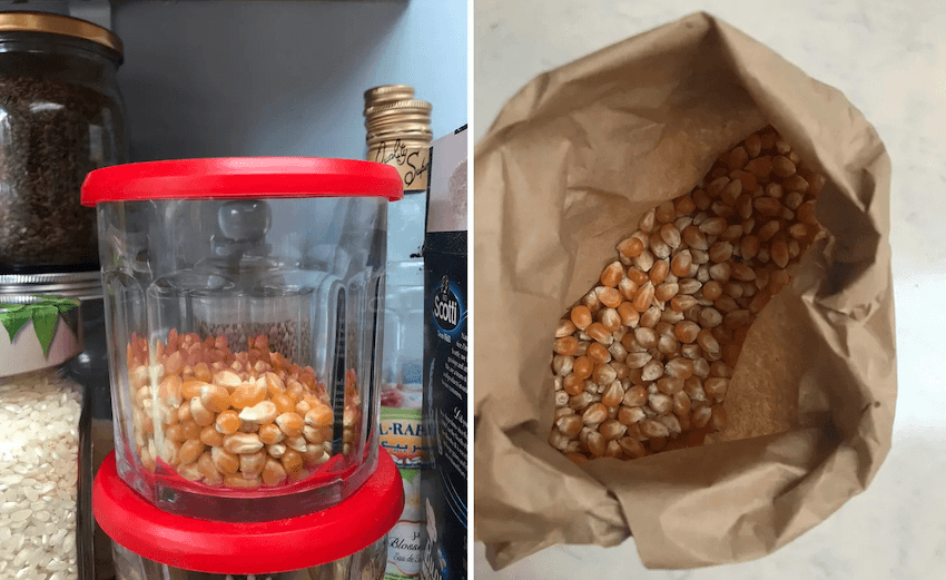 I turned to the internet which suggested two possible causes for this popcorn misfortune: incorrect cooking method or old/ bad kernels. I’d continued my previously fool-proof popping technique (including exactly the same pot and stove top) which had been cross referenced with those in online popcorn forums, so I let myself off the hook with that one. The variable that had changed, however, was my kernels. Because finding kernels at the supermarket can be spotty (unless you’re after the microwave kind), I’d turned to a rotating selection of bulk bin stores for my stash. I began buying small portions to use on the same day of purchase – and still had the same unfortunate outcome: the absence of movie snack material and the presence of failure.