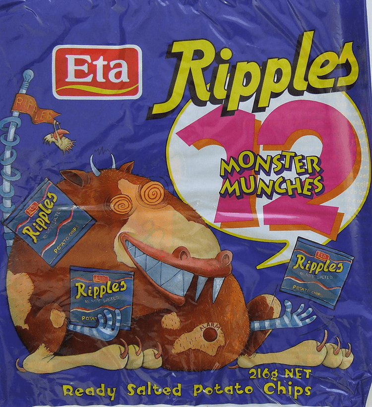 1997 Eta Ripples Monster Munches 12 Pack Chippies Packet. “I always enjoyed the original 1980s Monster Munch snacks, these may well be a clever knock off by Eta.”