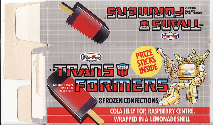 1985 Tip-Top Transformers Ice Block Box. “I lived on Transformers Ice Blocks and Snacks in the mid 1980s, great memories.”