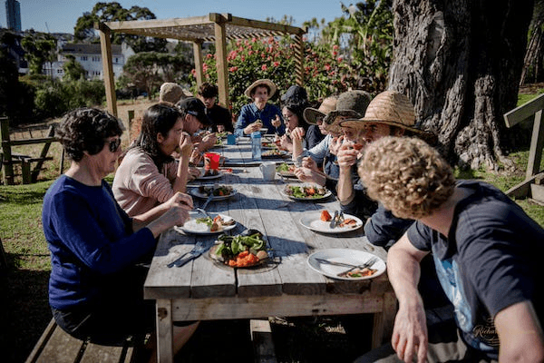 When Sarah explains that funding for environmental projects in Aotearoa is scarce, and how what little there is tends to favour conservation efforts, leaving initiatives centred on food and farming at a disadvantage, I’m aghast. Sure, urban farming may not seem like the most vital charity when there are children going hungry, but it is all connected. Decentralised food systems could provide communities with locally grown, nutrient dense food, while also cutting costs and carbon footprints. They also offer myriad other benefits: land regeneration, educating their communities towards self-sufficiency, the creation of green jobs, providing opportunities for connection to reduce social isolation and also calm, green spaces for people to walk and spend time.