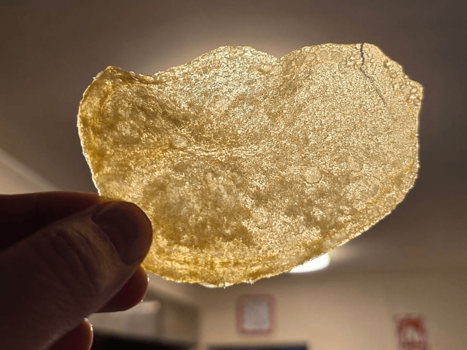 When presented to you, these chips speak of a deep earthiness as if they have been plucked from the good soil and dusted off. There is an unmistakable salted crunch that plays the perfect folly to sweet pickled clams or fatty tartare. To hold one up to the light is to see the moon appear in front of your eyes, it is to see the remarkable steps taken by Tom and Juno to feed you in the most exceptional way possible.