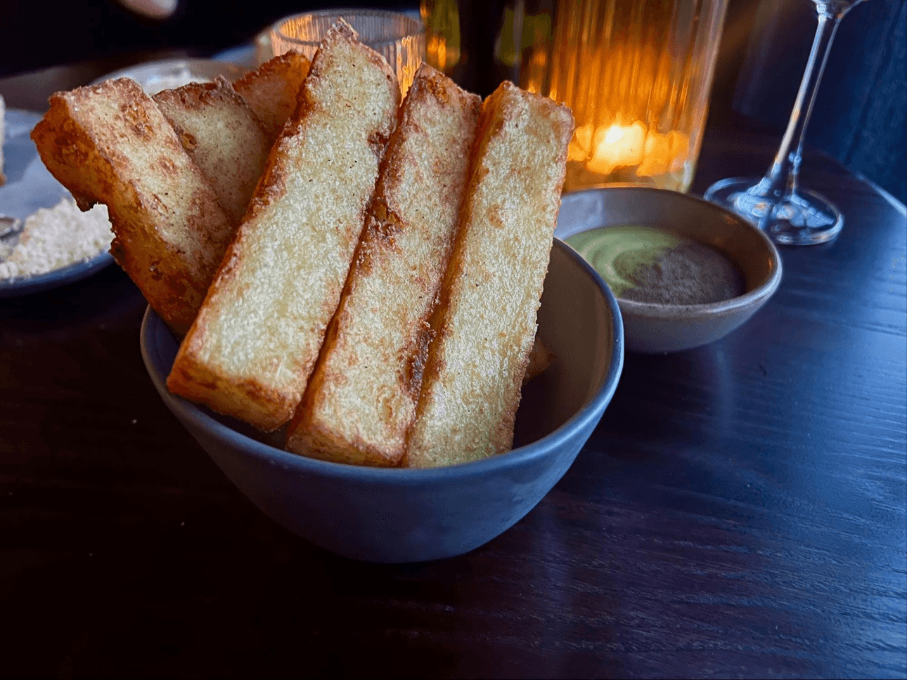 These are not just chips; they are uber0potatoes. They are at once the creamiest mashed potato and the most earth-shattering and textured chip. Dusted in a top-secret “tasty salt” and served with an astringent yet luxurious leek emulsion, these are the apex predators of the Wellington chip scene. A T-rex standing tall above all others and another strong contender for the best drinking snack in all of Wellington. Go and eat them, then eat all of the other clever things this team makes and drink all of the incredible drinks they serve. Then, go back and repeat this over and over again.