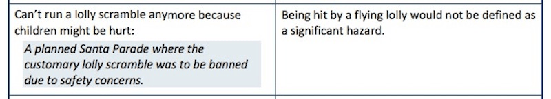 Tensions between Nanny State and Scramble State continued into the mid-2010s after Paula Bennett established the Rules Reduction Taskforce in 2014, encouraging the public to voice their concerns over outdated and frustrating regulations. The findings were published in “The Loopy Rules Report” in August 2015, and put any lolly scramble health and safety conspiracies to bed: “Being hit by a flying lolly would not be defined as a significant hazard.”