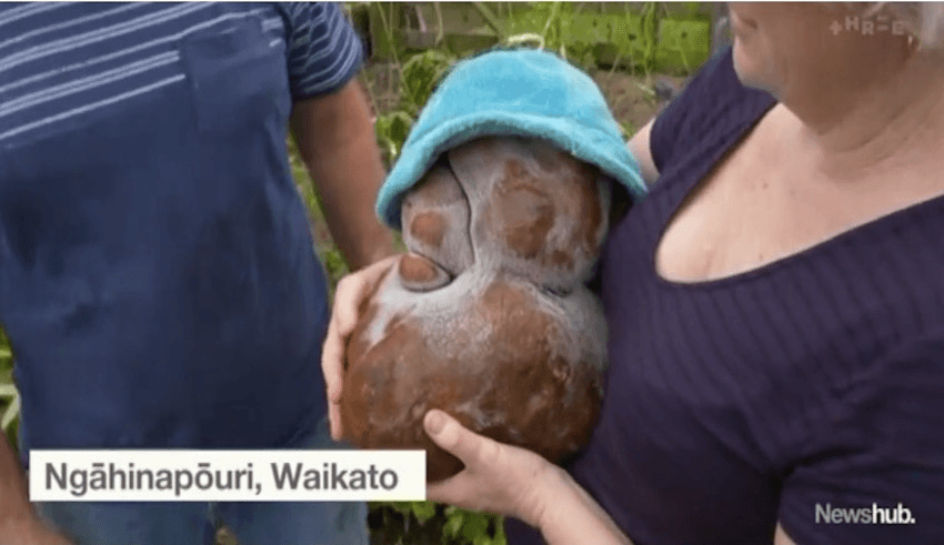 Colin tells Stuff that it has been “a real roller-coaster of potato-rama” with Dug. “We hopped on the roller-coaster eyes wide open and enjoyed the ride and this was the last real twist.” He wonders if the seedling he purchased was perhaps a hybrid of gourd and cucumber. “The mysterious part is why did it grow so big? And why does it taste and look like a potato?”