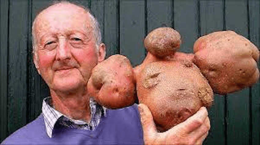 Scottish potato expert Alex Bartlett joins the panel to weigh in on Dug’s chances of taking out a world record title. “I’ve personally never seen a potato that big,” he says in awe. When asked about the knobbliness, Bartlett explains that “we take out knobbly bits before it comes to you”. He appears to find Dug’s warts-and-all bravery inspiring, musing that there could soon be a variety on the market in his namesake.