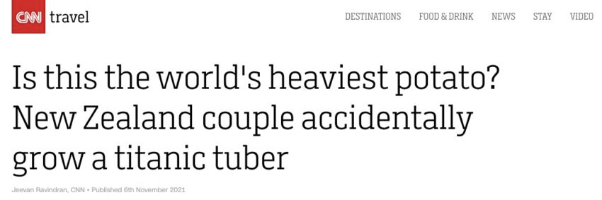 The Associated Press runs another illuminating article about Doug, republished by the likes of the NZ Herald and America’s NPR. The story remains much the same, except this time Colin muses that the potato might have been a “puffball” rather than a kūmara. Crucially, it is revealed that Doug now has a small cart that he cruises around town on. Upsettingly, it is revealed that Doug has begun to grow mould and reek. “He was getting a bit pongy,” says Colin, who now keeps Doug in the freezer.