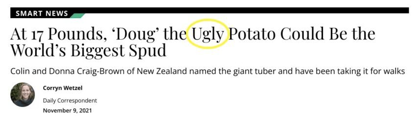 Two outlets frankly have egg on their face over their humiliatingly inaccurate Dug coverage. The first is the so-called “Smart News” section of Smithsonian magazine, which runs a headline calling Dug “Doug” and then adding insult to injury by calling him “ugly”: