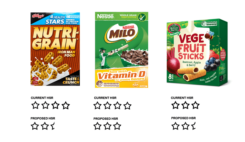 A government advisory committee then took these recommendations and created a revamped HSR calculator (which is basically just a very confusingly laid-out Excel spreadsheet) allowing you to see what ratings a product would have under the new system. Kellogg’s Nutri-Grain, for example, would see its 4-star rating drop to a more sensible 2.5, while Nestle’s Milo cereal would also drop from 4 stars to 3.