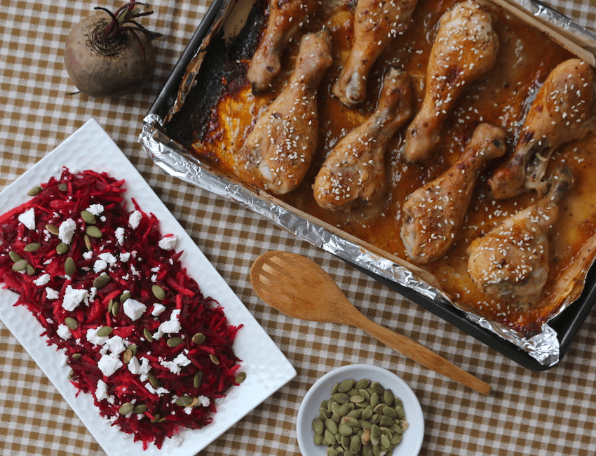 If you want to try something new with honey, here are two of my favourite honey-infused dinners. Number one… honey-glazed miso chicken meatballs with spicy mayo, fresh rolls, and slaw. So good. Just so good. Another great option is using honey to marinate chicken, like these honey mustard chicken drumsticks. Saucy, sweet, tender, with a kick from the mustard – they’re a satisfying and easy dinner.