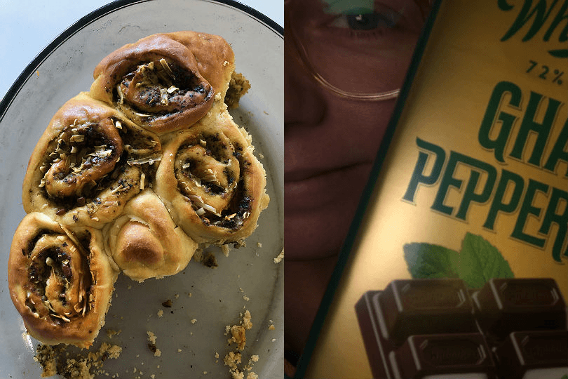 Josie’s delicious scrolls and Alex with her beloved dark chocolate