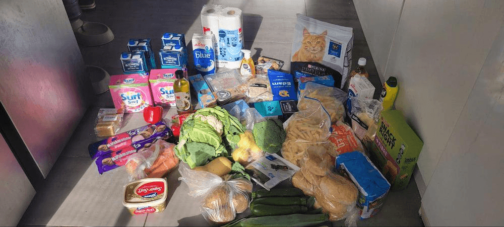 After making an appointment, Steve says he is put on a waitlist and waits anywhere between one to four weeks before his shop. When he shops, Steve gets a large trolley full of groceries, he tells The Spinoff, including fresh vegetables, seven cartons of milk, a large bag of cat food, two boxes of laundry powder, a tray of sausages, and a large block of cheese.