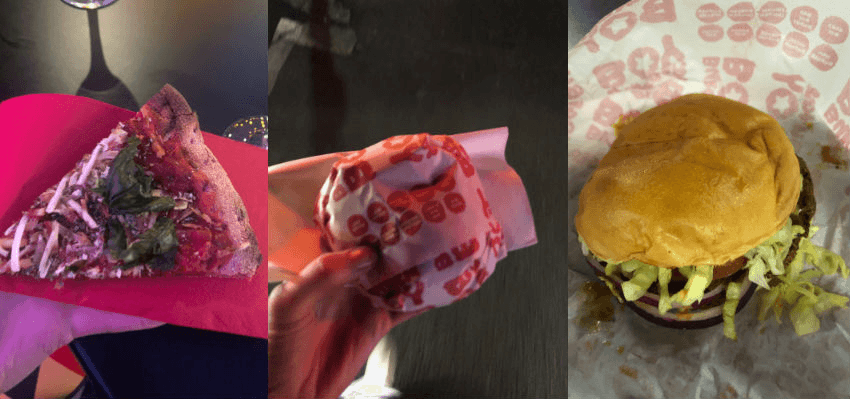 As predicted in the midweek update, the opening of the circus-themed bar on Wednesday night presented us with temptation aplenty. I whooped with joy when the first tray of food that came my way was laden with vegan pizza, but one piece of vegan pizza does not a dinner make. I tried to delve to the bottom of the aioli-drizzled waffle fries to find some sans aioli but I was hungry, dammit, so small amounts of the fancy mayo may have entered my gob. I also ate some popcorn because FTV Josie told me she reckoned it was vegan, but it sure as heck tasted buttery to me.