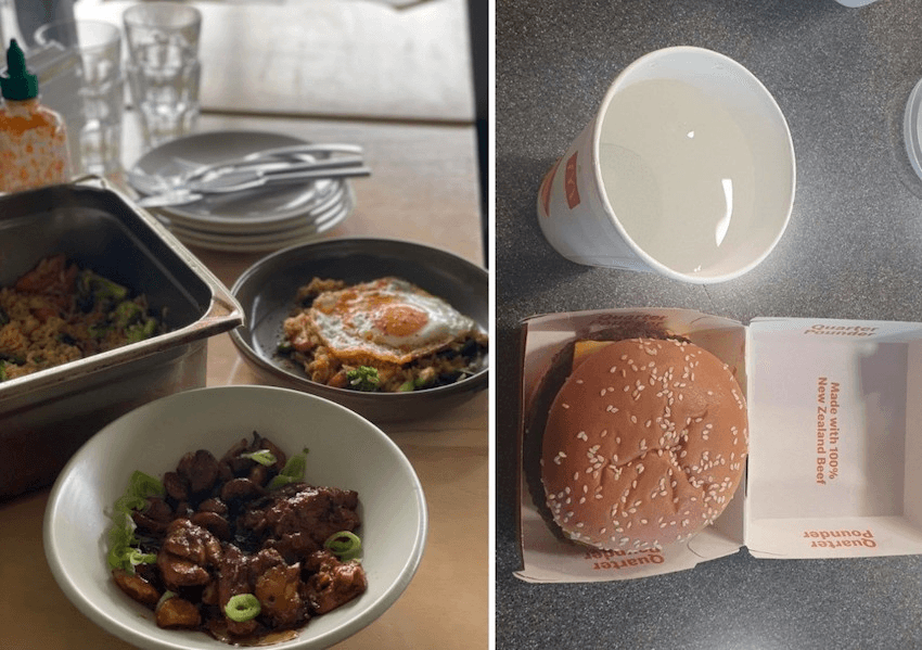 At McDonald’s Wairau in Auckland: “For me, it’s usually a Quarter Pounder and small Sprite No Sugar without ice. This was at 12.45pm Saturday, for a 15 minute break. We only get half-priced meals though. At my store a quarter pounder costs $8, so I get it for $4. We have a limited menu of what we can get for half-price. Small tea, filter coffee (which is just a long black with a splash of cold milk) and soft drinks are free.” – Xavier Walsh, staff
