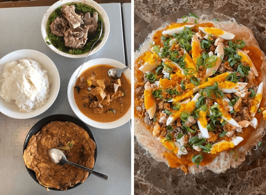 At Auckland northern Thai restaurant Kiin: “What the team had for lunch on Saturday was: Thai omelette, Panang beef slow cooked, pork bone tom zap soup, using the pork bones from our broth pot, and adding spicy and sour flavouring, and jasmine rice. My father-in-law (Somkiat Chatthai) and his wife (Nitchapha Kasanthia) are the ones responsible for all the great food at Kiin.” – Bon, manager