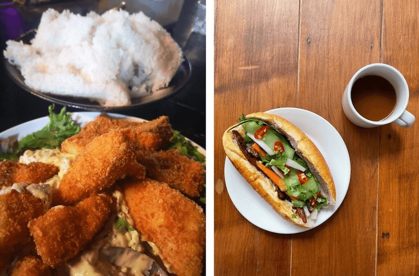 At Auckland Italian restaurant Pici: “Dish: Pork bánh mì made by Kia Kanuta. Before dinner service each day we have a staff meal together, accompanied by a big pot of coffee. This is the time when the whole team has a moment to sit down, usually outside the restaurant in the arcade.” – Gemma Hareb, co-owner