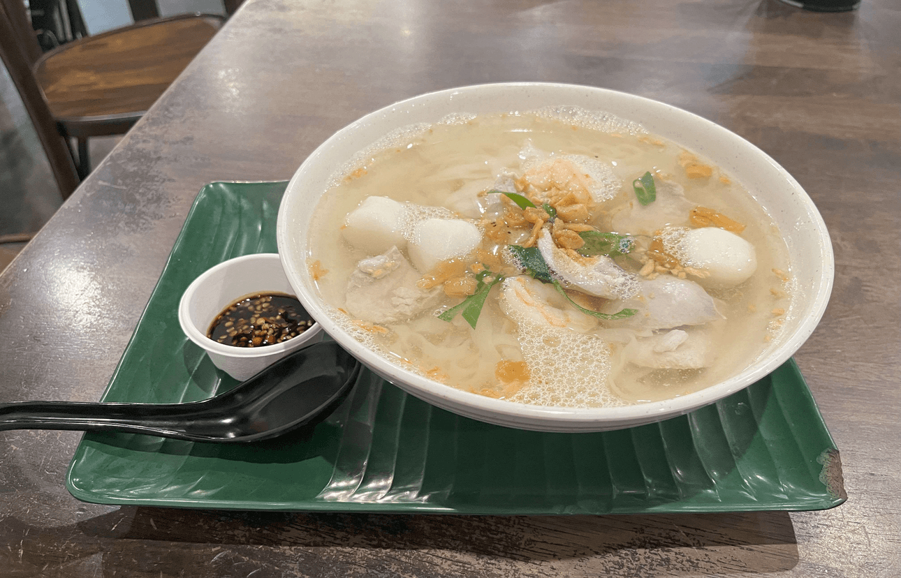 It was an unfair trade. The koay teow th’ng I ordered, a fragrant chicken broth with flat rice noodles, juicy seafood, and chilli sauce, was the perfect winter warmer. I’d gladly wait forever for good Malaysian kai.
