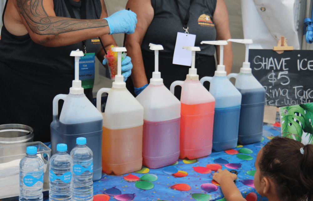 While the real stars of Te Matatini are on stage, along with their backstage support and whānau in the crowd, the sparkle of Te Matatini, like any event in te ao Māori, has been punctuated by its abundant and delicious kai. Some of this was made up by pillars of Māori cuisine: foil-wrapped hāngi parcels, kina shots, half-shell oysters, creamed paua, steamed pudding, fry bread and mussel fritters. And then, there are delectable treats from further afield: Lebanese mezze platters, Cook Island barbecue, Tongan Ōtai, bowls of Cantonese sweet and sour pork and delightfully kaleidoscopic shaved ice. To celebrate all of this, nothing but a picture essay will do. Here are images of just some of the kai on the first day of Te Matatini.