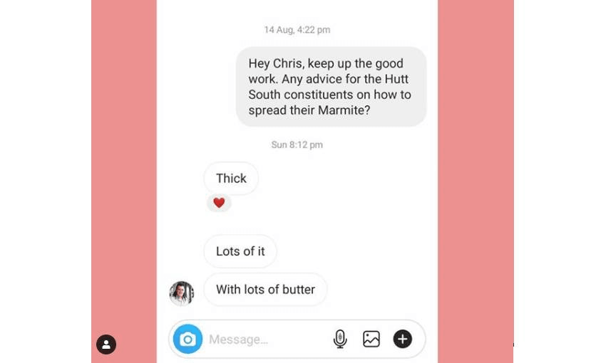 Its name implies there is such thing as too much Marmite, but its anonymous founder told the Spinoff the username is better read as a question. He couldn’t delete an account, so decided to use it for research. “The most recent picture I had on my phone was a photo of my flatmate’s excessive (in my opinion) Marmite spread,” he said. “I then added and messaged a whole bunch of politicians spontaneously to work out whether my flatmate was being too liberal with his Marmite.”