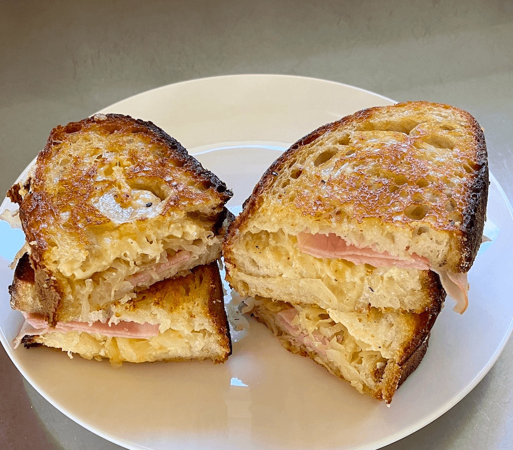 Which makes this stack of cheese and sauerkraut toasties, fried in lashings of butter, healthy. Right?