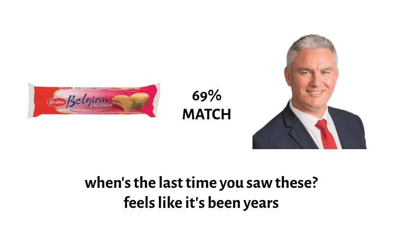 There are only two mint biscuits in the biscuit aisle, the Mint Slice and the Mint Treat. They sound the same. They even look the same. They are not the same. Whenever there are two of the same biscuit from Arnott’s and Griffin’s, believe me when I say Arnott’s will be better (see also: Tim Tams, Digestives). A Mint Slice is what you put out when you didn’t make a dessert for your dinner guests and they’ve annoyingly decided to hang around for a cup of tea. It’s a little bit classy, literally only because there’s mint in it. But it works. A Mint Slice makes you feel sophisticated and proper and is arguably the grown-up less horny Toffee Pop.