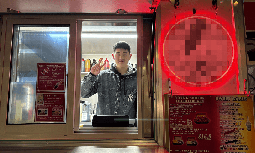 It took about half an hour for Yang to watch a YouTube tutorial and create the YFC logo, which features his own beaming face in posterised style on a deep red background, next to “YFC” in white writing. They opened YFC in a sublease in Papanui, before moving to the food truck site on Riccarton Road earlier this year. Still in year 13, Yang says the balance has been a struggle. “When I get off of school, I come here, and I work. I go home about 11 or 12 every night, and it leads me to studying until around three or four AM and not getting any sleep most days.”