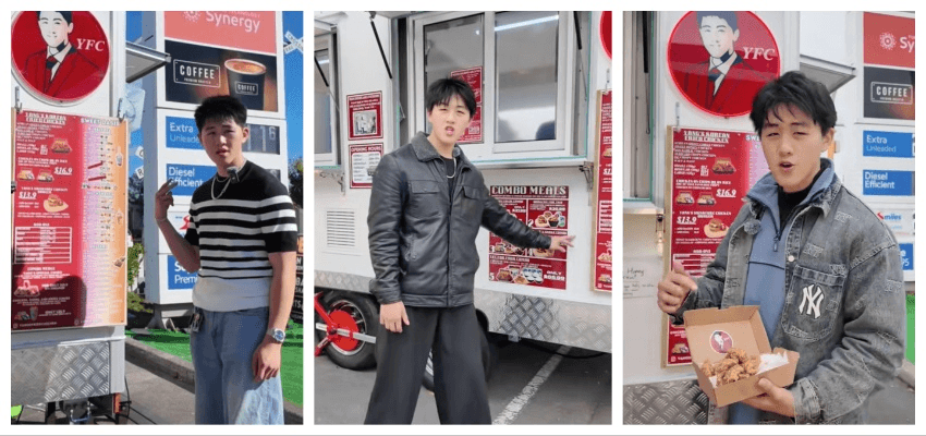 You wouldn’t know any of this from Yang’s captivating and energetic social media videos for YFC. His impressive number of promotional reels includes skits, dances and special effects, all made by a fellow Burnside student who Yang pays to shoot and edit. Other videos feel like they could be lifted straight from the Nathan Fielder playbook. “Are you looking for the most crispy and most juicy chicken in town?” he bellows from outside KFC, a cartoon exclamation mark blazing red and yellow. “Well, you won’t find it here, but you will find it at YFC.”