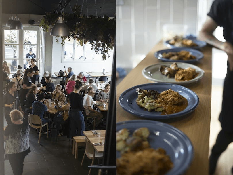 It’s a restaurant experience – the minimalist, light-filled interior features stylish pale wood furniture and hanging greenery; tables are set and water glasses are topped up – and for some, that can be intimidating. It’s a problem that needs tackling each time they enter a new community, says Loosley. “Some people feel uncomfortable walking into what they consider a flash environment.”
