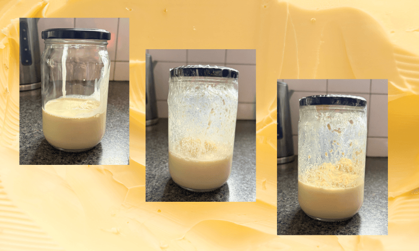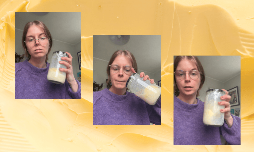 My recipe for homemade butter came from The Stay at Home Chef, whose promise of “a fun old-fashioned activity for kids” seemed achievable even for me, an adult who once let a whole unopened bag of frozen corn melt onto the sizzling hot element because I got distracted on my phone. The only prep required was picking up 300ml of fresh cream from Pak’nSave Riccarton for just $3.25, digging out an old jar from the garage, and washing the spider corpses out.