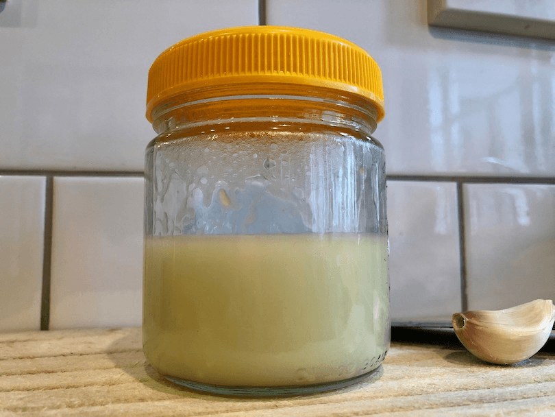 To perform this very easy culinary magic trick you will need a screw-top jar that does not leak, a lemon, some garlic, and some good olive oil.