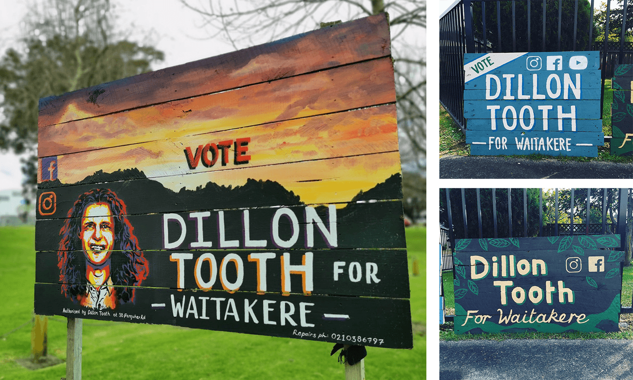 Out west they do things differently, thank god, and no one is standing out like Dillon Tooth. There’s a fairly long list of criteria you want to see in a mayor, but for local boards, let’s be honest, you’re really just asking for the person to be legit (ie. not another in the endless stream of business people in it to protect their own business interests), and have some passion. Dillon’s signs are all one-of-a-kind designs, hand-painted by his partner Esther. Legit? Tick. Is he keen? Tick. These are overloaded with character and personality and I love them.