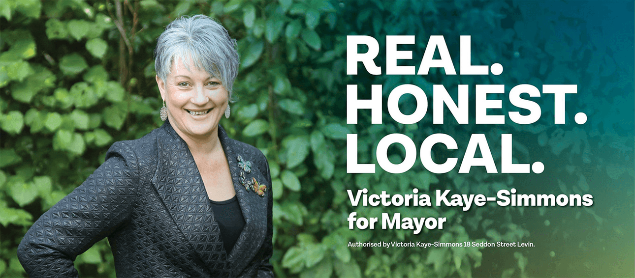 All jokes aside, after criticising and/or ironically praising all of the above, you might be wondering what an effective design should look like. In total seriousness, this effort for Victoria Kaye-Simmons in Horowhenua is about as good an example as you’d hope to see of how to do it right. The layout is clearly organised and easy to read. The text is clear, strong and to the point. The typography and the photo are well executed – the vibe is smart and capable, but still with character and personality. Hands on hips is an underrated election pose too I reckon. It says ‘let’s get working’ and ‘OK Michael, my turn now’.