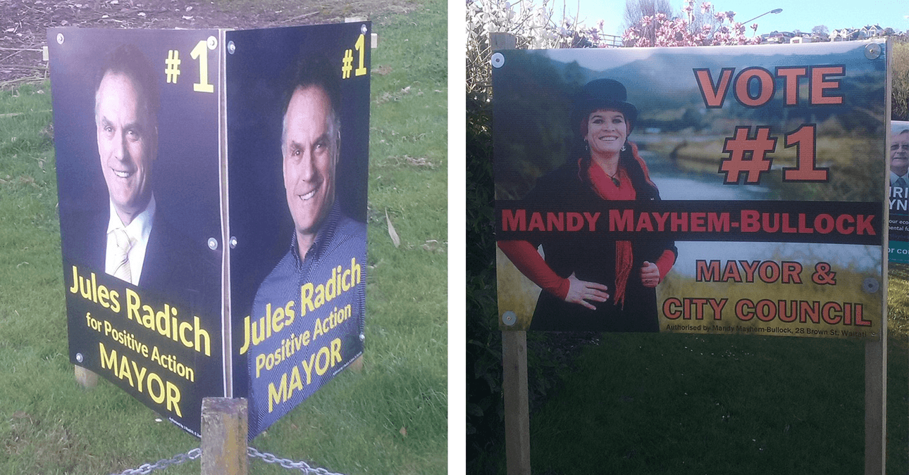 Faces, faces everywhere. Big names, at least in terms of font size. Ticks galore. Yes, it’s local body election time again, where thousands of would-be mayors and council and local board hopefuls plaster their signs along the edges of parks and busy intersections all around the country.