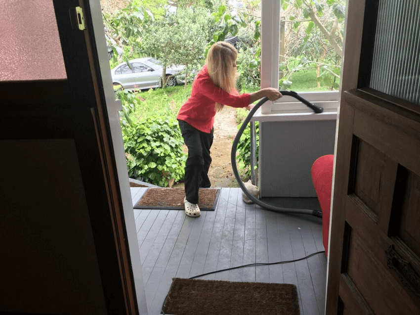 12.05: Election candidates around the country are extremely freaked out right now as we wait for results. In Auckland, candidates are expecting a call on preliminary results at around 1pm, though they won’t be officially posted to the council website until 2pm. Thanks to a leak from a family insider, we can reveal the toll the wait is taking on one Auckland elected representative. Below is a photo of Albert-Eden-Puketāpapa councillor Cathy Casey stress-hoovering her porch. “She was hoovering the bath earlier,” the insider said.