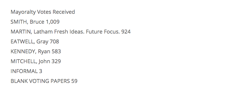 1.11: An actual result! Hutt City will have a new mayor, with 28 year old Campbell Barry beating incumbent Ray Wallace. We profiled that race here – it’s a big pickup for the Labour Party.