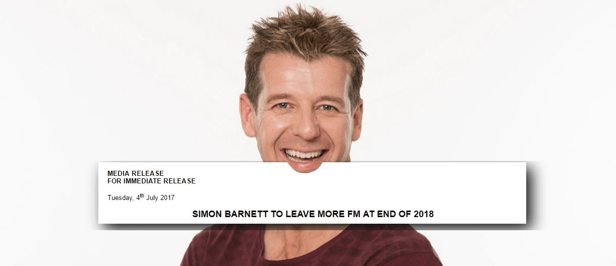 Beloved breakfast radio host Simon Barnett has announced his departure from More FM, in only 545 days. But that number will almost certainly become smaller with the passing of every day. Please bookmark this page for the very latest.