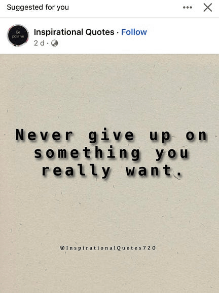 Do I want this quote served to me over an announcement from a friend from high school that she’s selling essential oils and everyone should go organic even though I distinctly remember doing drugs with her in high school those drugs were not organic? Hmmm maybe. Undecided.