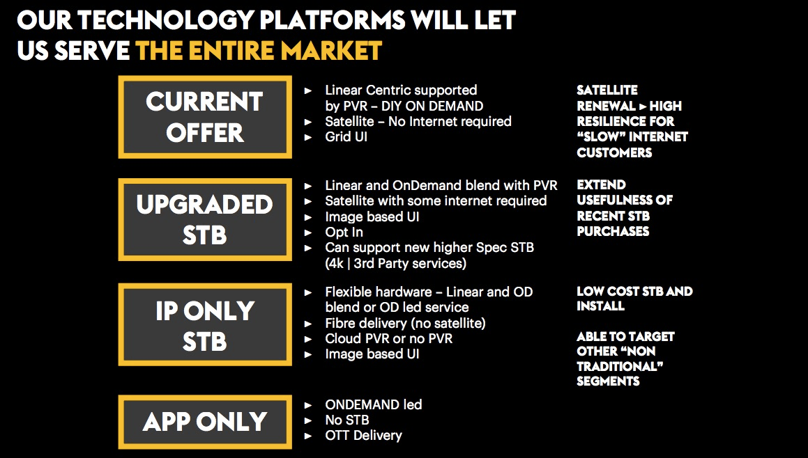 The core of it is a move to a far more diverse product offering, with price points to match the smaller wallets and narrower interests of younger consumers. Group head of strategy George MacFarlane talked about a focus on “incremental customers” and, tellingly, a “transition to a VOD-centric world”.