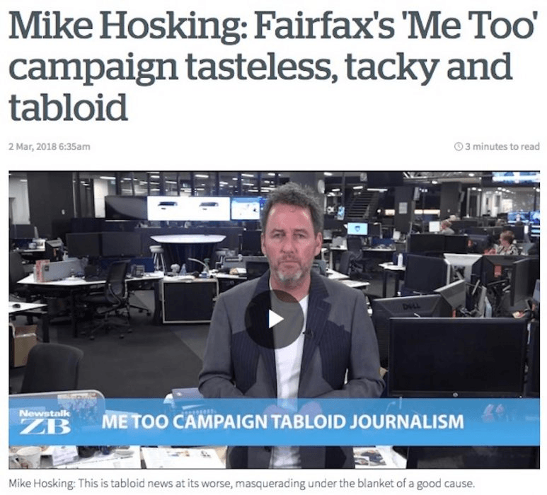 I suppose it’s the same ballpark as one of your ex-colleagues who said #MeTooNZ was clickbait and tabloid journalism?