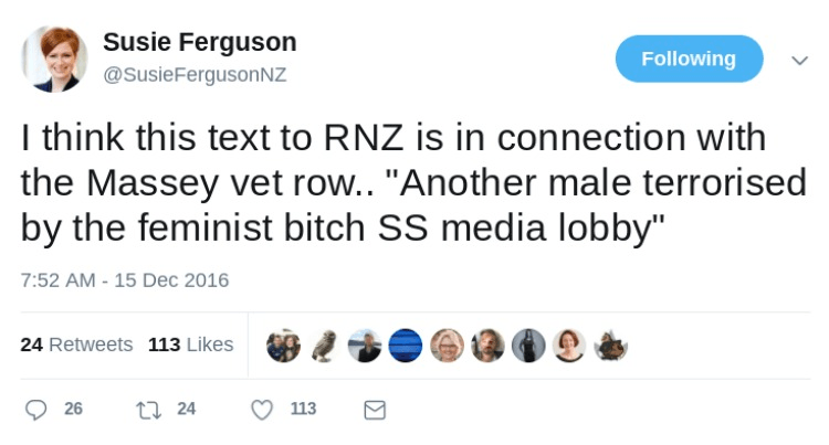 But dealing with such harassment was a time sink, and discussing the exact nature of the things said about reporters online could provoke embarrassing conversations with their bosses. Megan Whelan found just that in a recent instance where a man who’d had been searching for how to send feedback to RNZ had spotted a picture of her and publicly posted an abusive critique of her appearance instead. He included her Twitter handle to make sure she saw it.