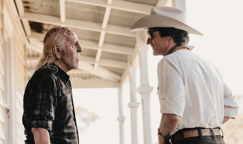 Although shooting around the North Island, the farm is a central tenet in the world of X, as were the people who lived on the land – two women in their late 80s and early 90s named Joan and Spin. “They were amazing,” Jaffke says. “They had been on this farm for their whole lives, they raised horses and they were still active every day.” Joan and Spin were more than happy to advise production on all the ways they were wrongly representing farm life. “I think they really enjoyed seeing the circus come to town and what our interpretation of farm life would be.”