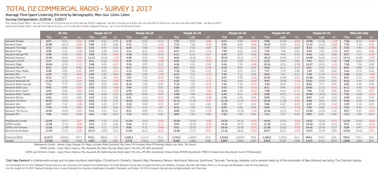 1. RNZ’s move to join the survey appears vindicated. RNZ National’s weekly cumulative audience was measured at 579,400 listeners, up from 535,200 last year. It’s a lot, and seems like vindication of Paul Thompson’s open content stance and major rejuvenation of key shows. Every major property recorded an increase, a seriously impressive result after the grumbling which accompanied the moves initially.