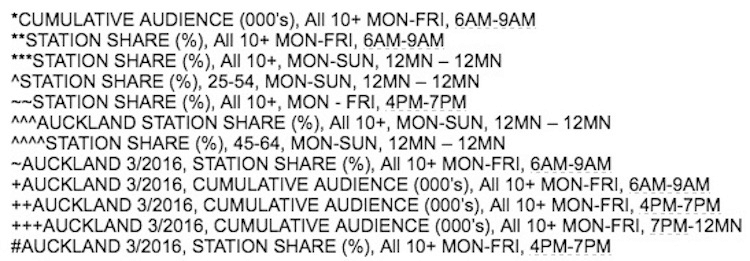 Nothing displays the bewildering segmentation which occurs between markets than the volume of asterisks and other markers used to identify the claim being made. I mean, what the fuck is a ɸ and where else would you ever see it apart from a radio survey press release?
