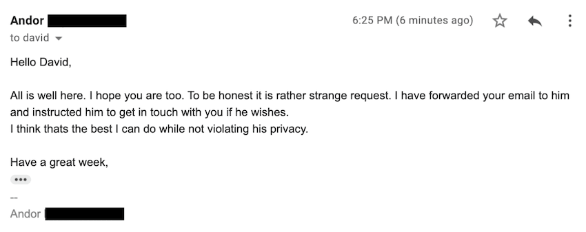 I am really hoping you can provide me with some clues. I don’t want to violate his privacy, but would love to talk to him over email perhaps, just out of my own curiosity.
